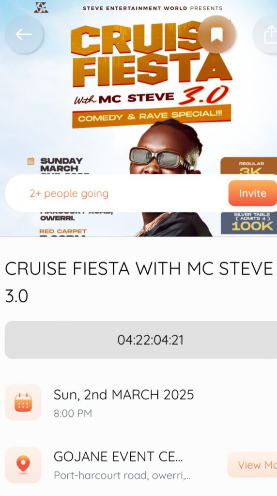 The app makes it super easy to discover events from all over the world, including right here in Nigeria. Whether it’s an art show in Lagos, a tech meetup in Abuja, a Cruise Fiesta with MC Steve at PH Road, Owerri, or a blockchain event in New York, you can find it all in one place.